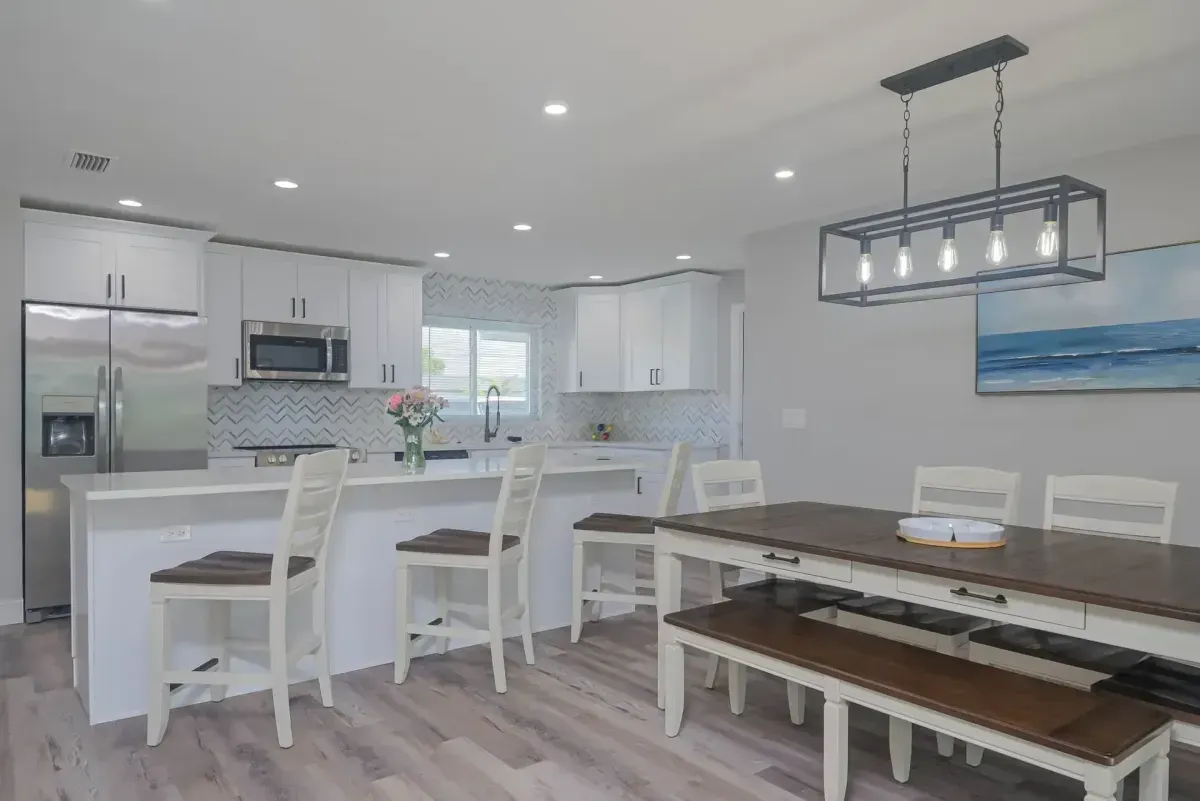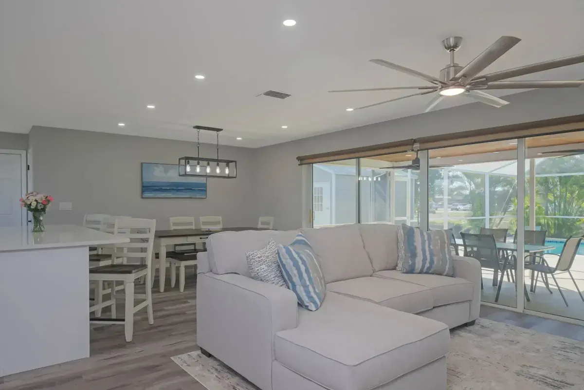 This modern, move-in-ready Cape Coral home is fully furnished and completely renovated in 2024, featuring a new metal roof, brand-new kitchen, bathrooms, and flooring, and elegant modern finishes throughout. Enjoy true Florida living with a private dock, boat lift, sailboat access, and a sparkling pool right in your backyard. The property also includes a fully permitted large shed, perfect for storage, a workshop, or hobby space. A garage provides additional parking and convenience, all located in a quiet, non-HOA neighborhood with no flood zone concerns — just minutes from shopping, dining, and waterfront attractions. Perfect for buyers who want a turnkey home and ownership without the hassle of traditional bank financing.